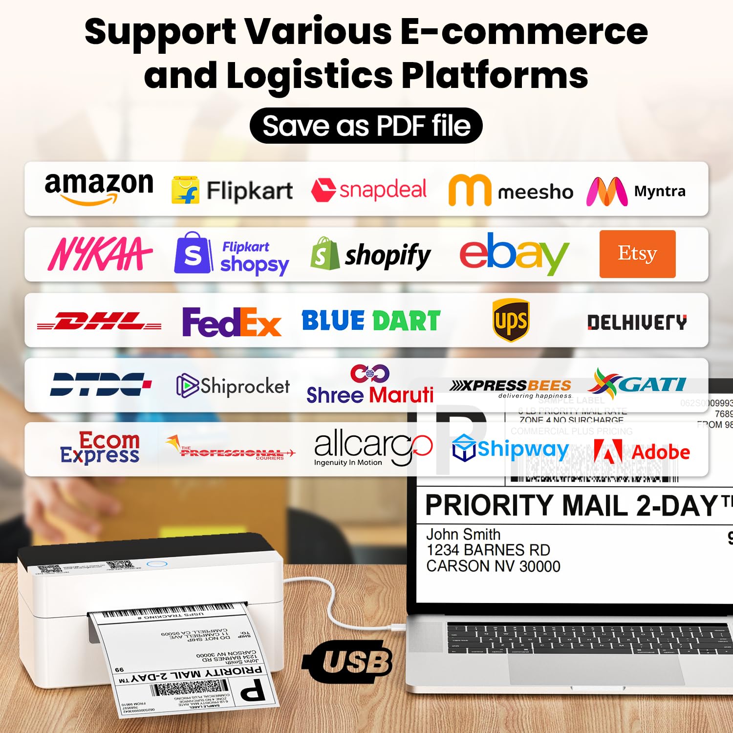 With 203 DPI resolution, you get clear, smudge-free prints every time—no ink or toner required! It’s fast, reliable, and works seamlessly with major platforms like Amazon, Flipkart, UPS, DHL, FedEx, and more. Plus, it’s compatible with both Windows and Mac, so you can plug in and start printing right away.