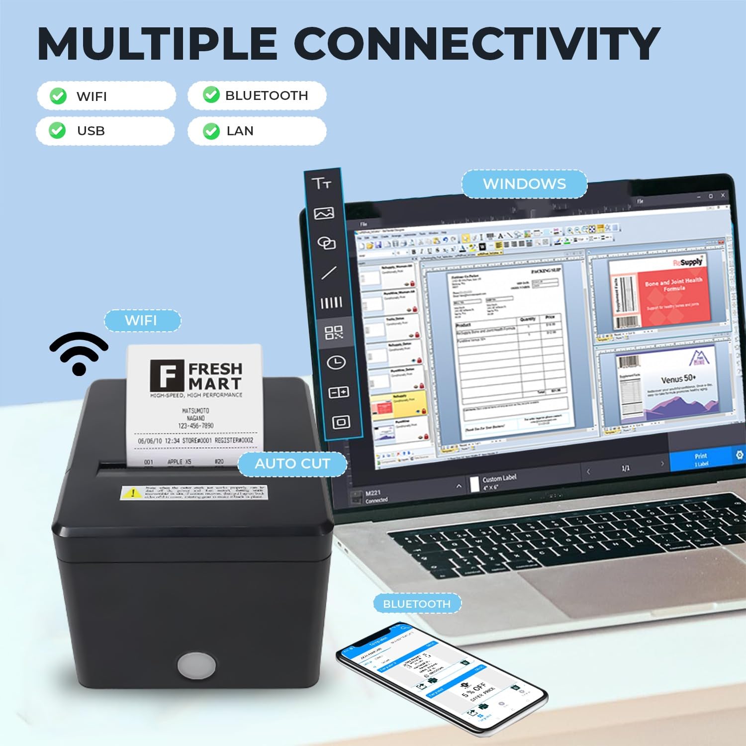 It supports multiple connectivity options including Bluetooth, WiFi, LAN, and USB, so you can print seamlessly from a variety of devices without any fuss. The 80mm paper width gives you wide, clear receipts that look professional and are easy to read.